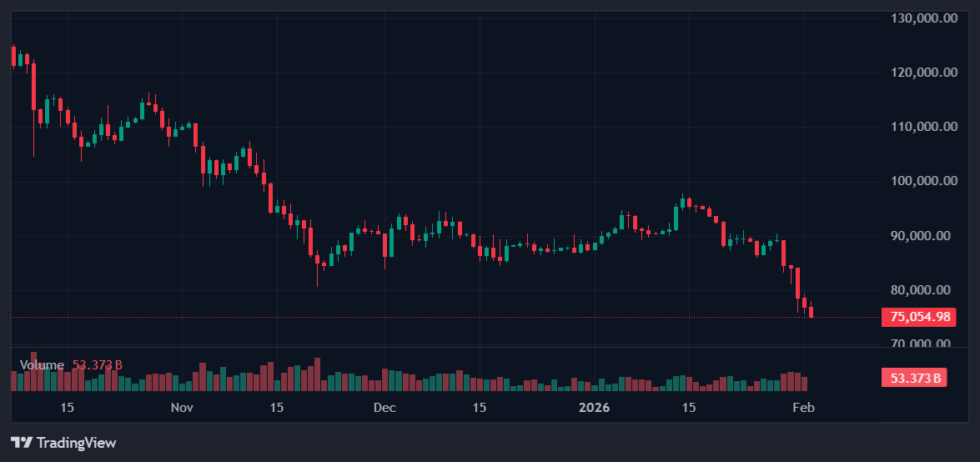 • Bitcoin fell below $80,000 on Monday, dropping as low as $75,644 as it broke under its 21-week moving average—a key technical level that often signals a bear market.